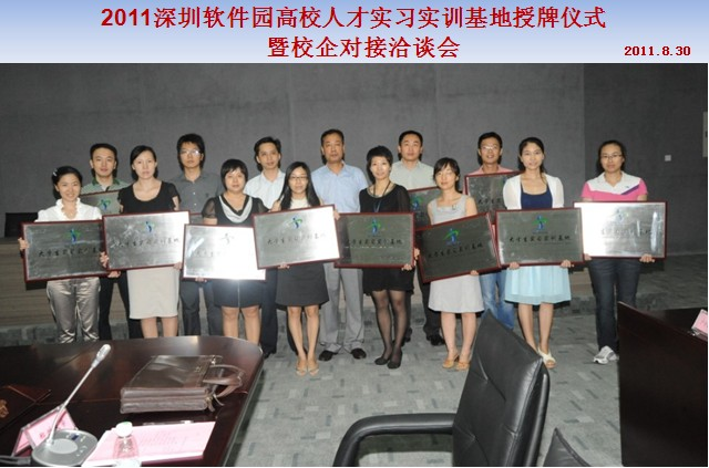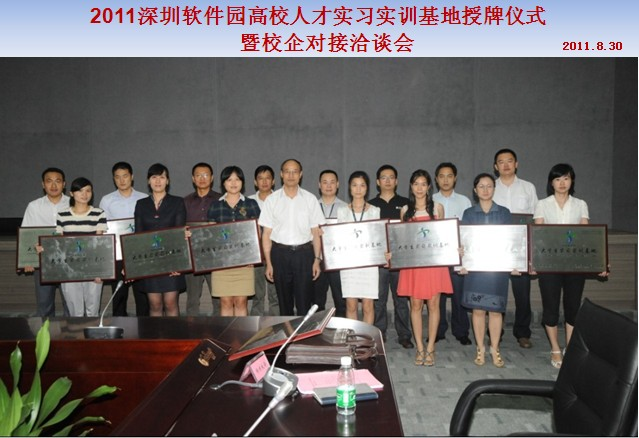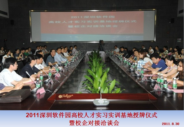 2011深圳軟件園高校人才實(shí)習(xí)實(shí)訓(xùn)基地授牌儀式暨校企對(duì)接洽談會(huì),于2011年8月30日在軟件大廈一樓圓滿召開(kāi)。首先,科工貿(mào)信委領(lǐng)導(dǎo)出席了講話,參加會(huì)議的有四川大學(xué)軟件學(xué)院、湖南大學(xué)軟件學(xué)院、西安電子科技大學(xué)軟件學(xué)院、武漢大學(xué)國(guó)際軟件學(xué)院、香港理工大學(xué)等十六所知名高校代表,與20多家企業(yè)進(jìn)行了愉快的對(duì)接洽談。