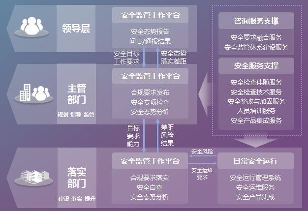 安全合規(guī)工作配套的咨詢服務和安全服務,也為主管部門和落實部門開展工作提供全面有效支撐。
